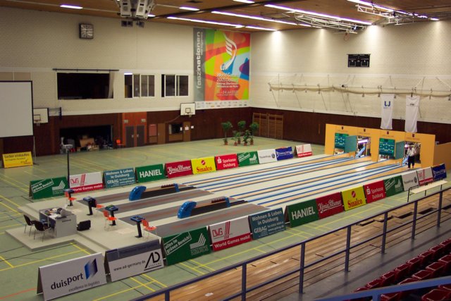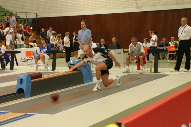 Hier standen sich Blasen Steve, Holger Mayer, Guus Maes und Bernardo Immendorf, in der mit 600 gefüllten Zuschauern, mittlerweile, sehr heissen Sporthalle gegenüber. Steve konnte von Anfang an überzeugen und ausser Guus Maes schien keiner der anderen beiden Kontrahenten ihn von seinem Ziel diese Worldgames zu gewinnen, abhalten. Mit 829 Holz und somit Gold, wurden diese Worldgames für Steve und Luxemburg perfekt.