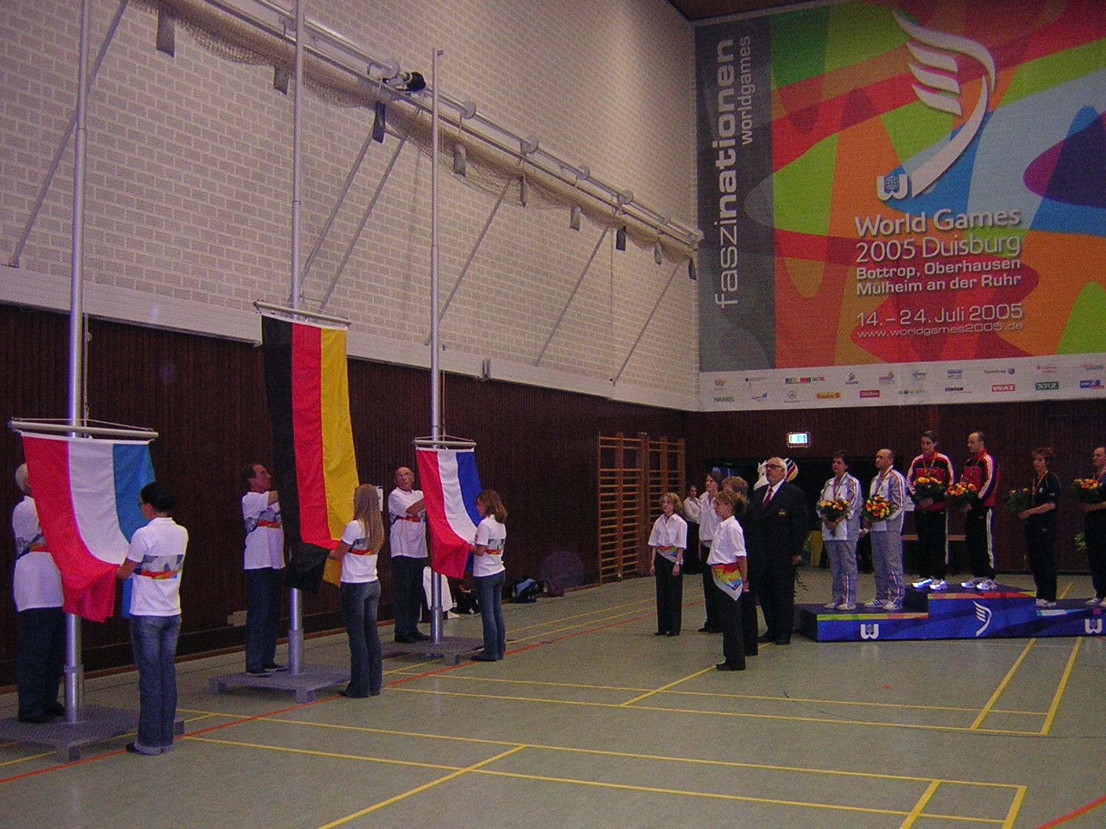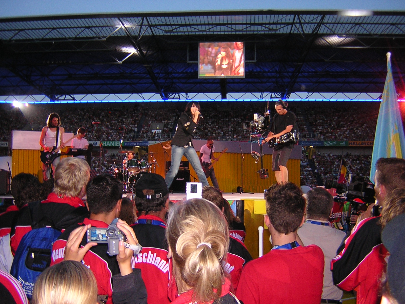 Nach den Ansprachen der Offiziellen, Herrn Schilly, Herrn Rogge und Herrn Fröhlich erklang die deutsche Hymne,sowie die offizielle Hymne eigens für diese Worldgames geschrieben, und mit einer in Superform genialen Nena und einem herrlichen Feuerwerk klang dieser unvergessliche Abend aus.