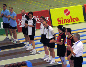 Um 17.30 Uhr fand dann das Finale des Tandem Mixte statt, indem das luxemburgische Paar noch vor den letzten 15 Kugeln nur 4 Holz hinter den Favoriten Justen/Mayer lagen. Allerdings konnten sich diese dann souverän auf ihrer letzten Bahn durchsetzen und Della Modesta/Blasen erreichten trotzallem mit 659 Holz den hervorragenden zweiten Platz.
